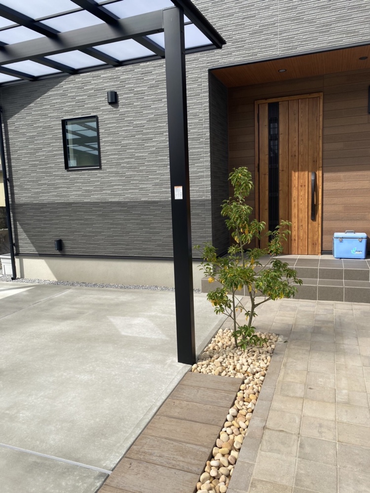 ソヨゴの植え込みを致しまして植栽作業の完了です。 | ホームエクステリア『アサヤマ』