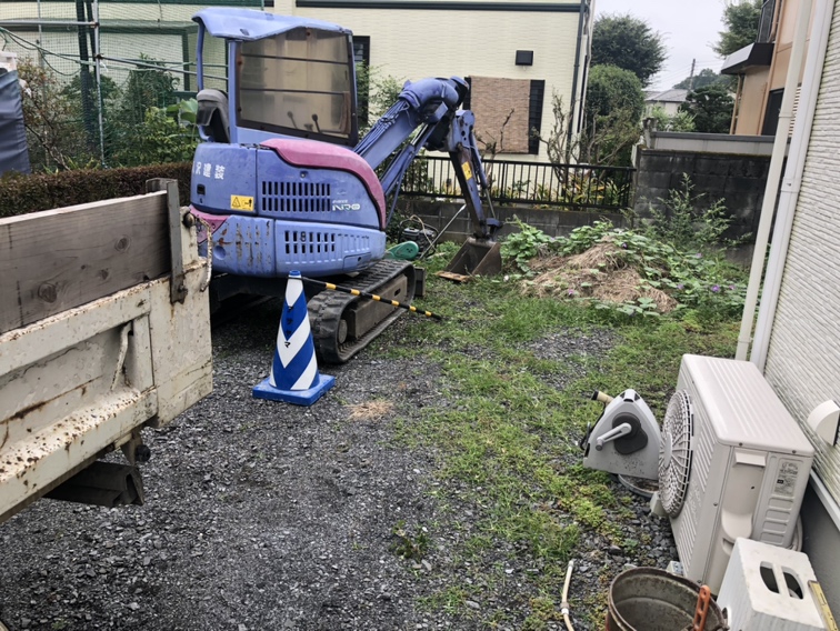 本日より工事着工です。境界部分の掘削作業より工事開始です。