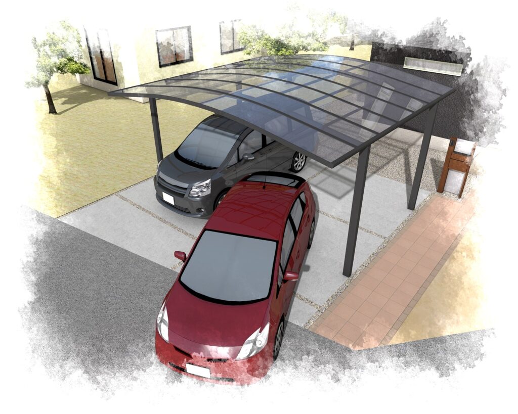 カーポートには電気自動車用と、防水コンセントを取り付けます。