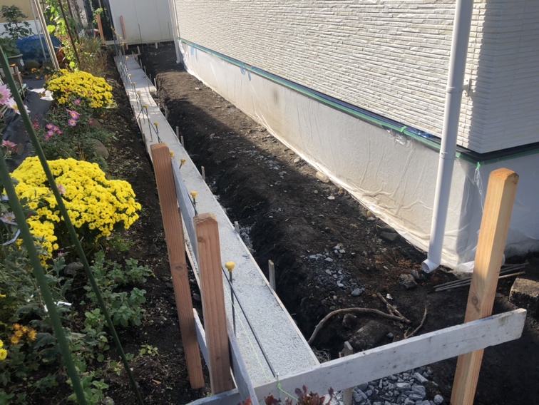 お庭への山砂の搬入敷き均しとなります。人工芝の下地を作って参ります。