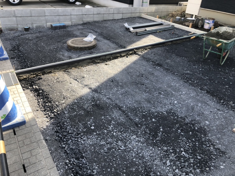 お待たせ致しました。本日より工事着工となります。境界側のブロック部分の掘削作業より工事開始です。
