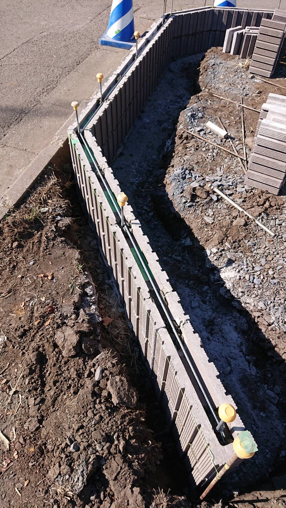 ブロック積みです。