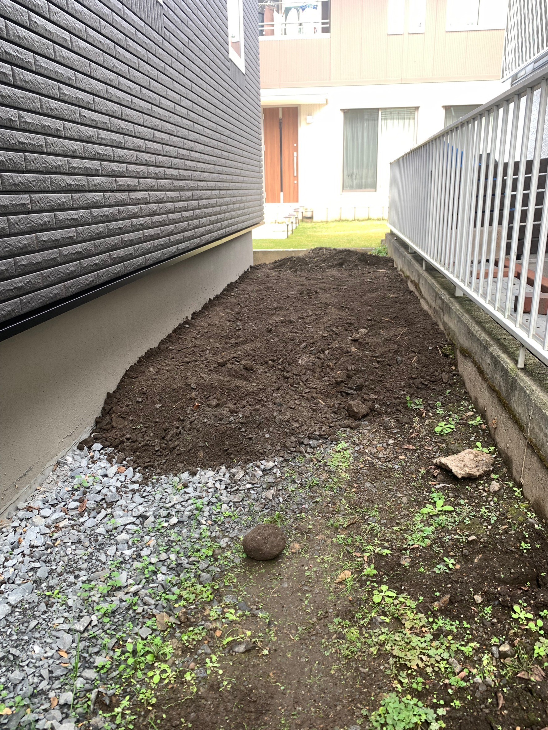 建物周り埋め戻し整地です。