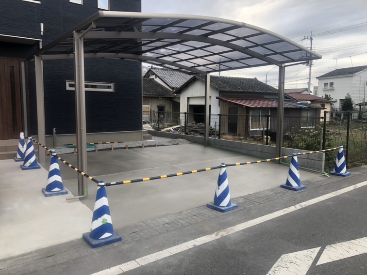 駐車場土間コンクリートの養生となります。