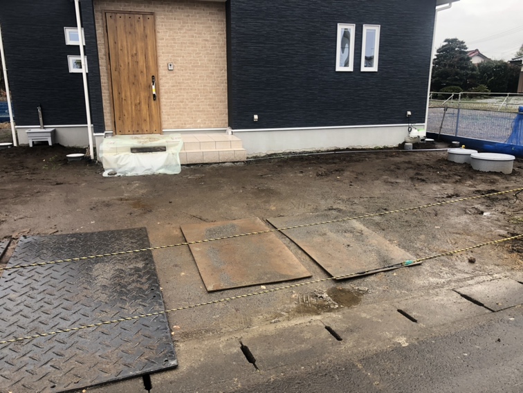 駐車場土間コンクリート、型枠外し、 6号砕石入れです。