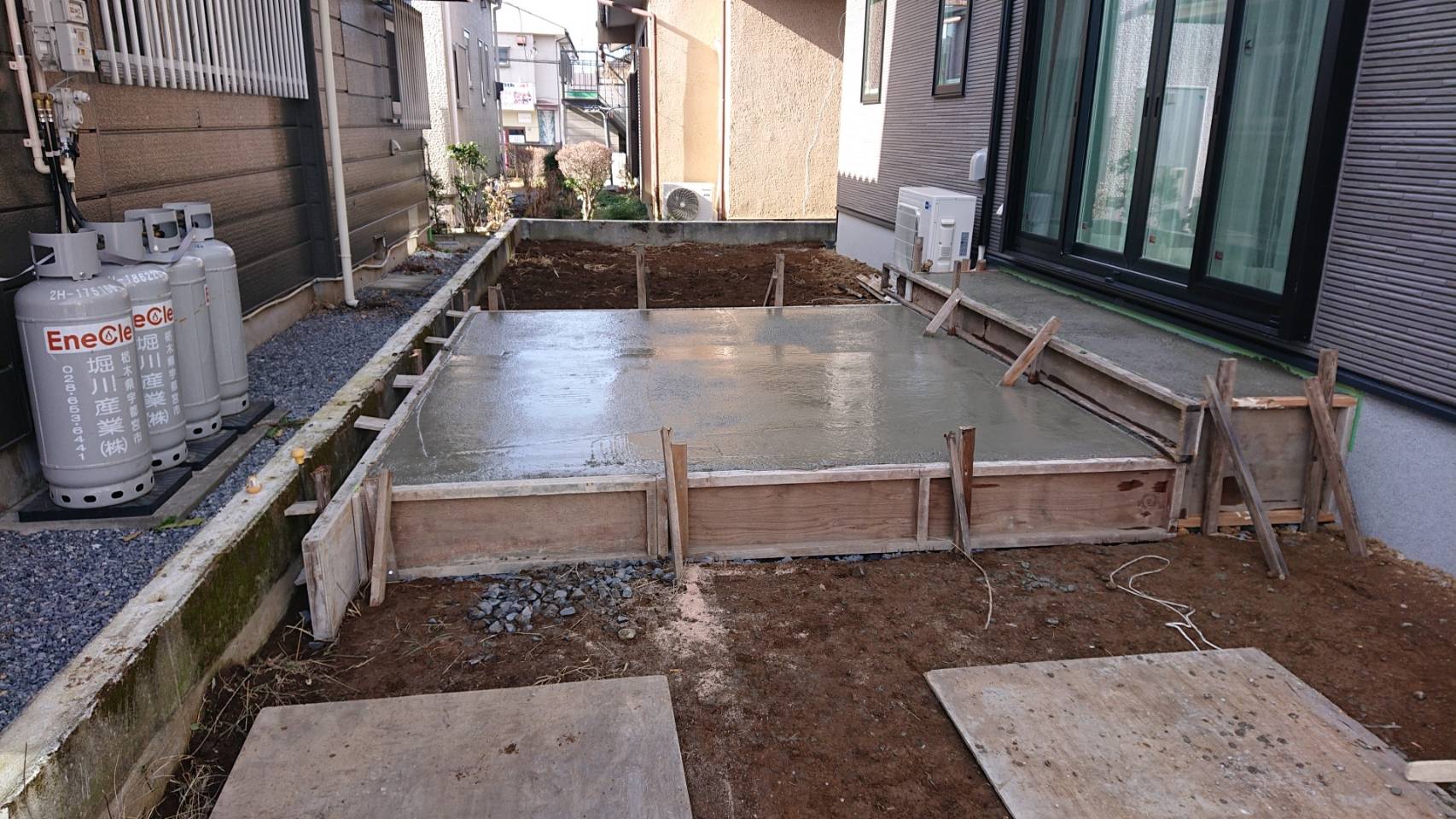 ガレージ基礎立ち上がり、コンクリート打設です。