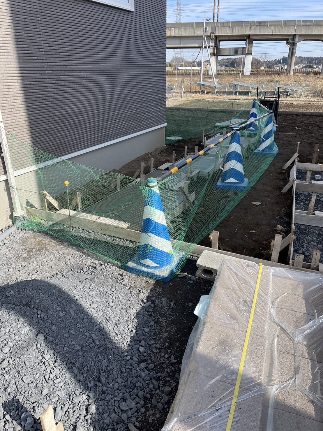 外構ING  土間コンクリートネット養生です。