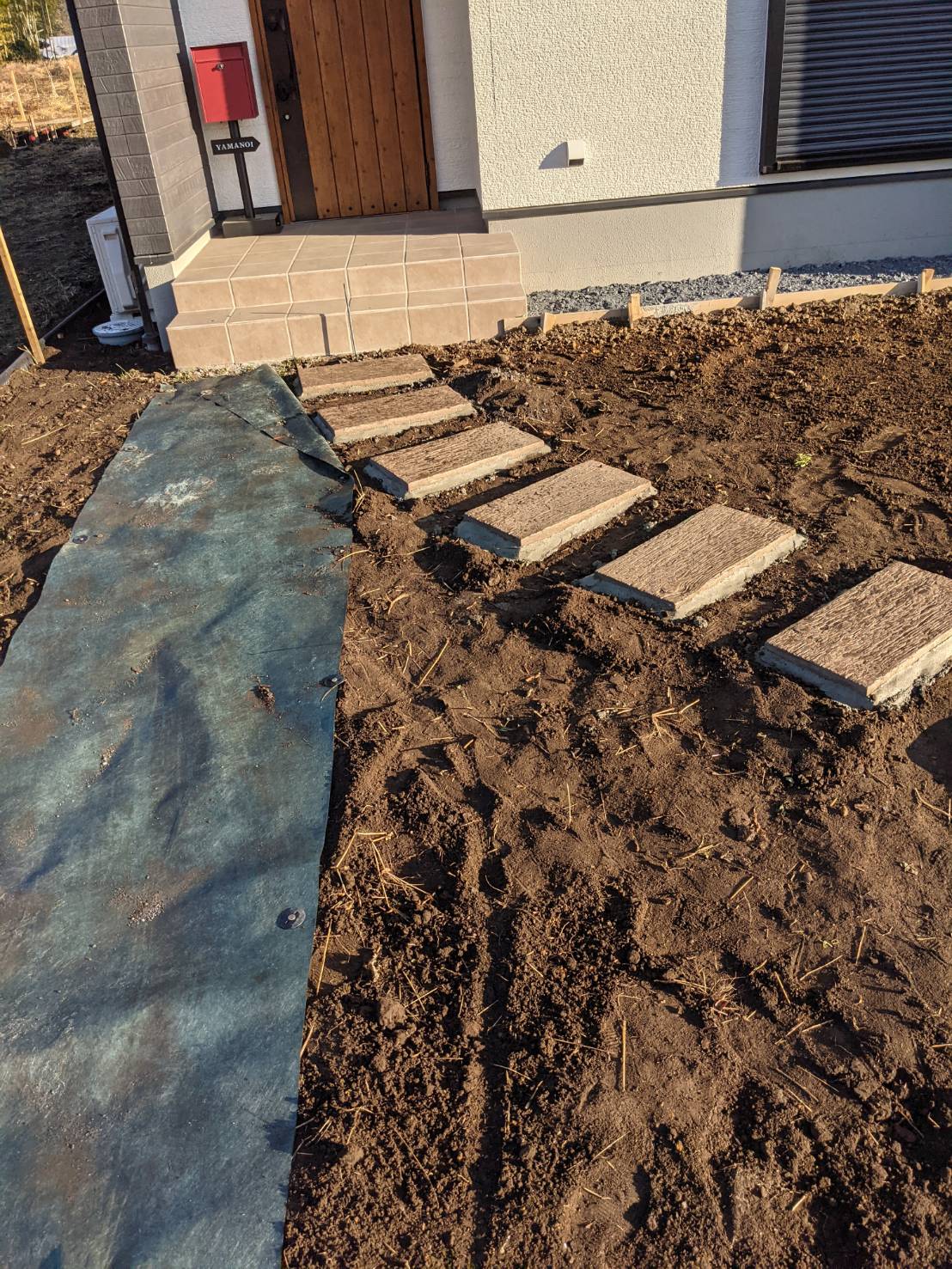 アプローチ平板設置です。