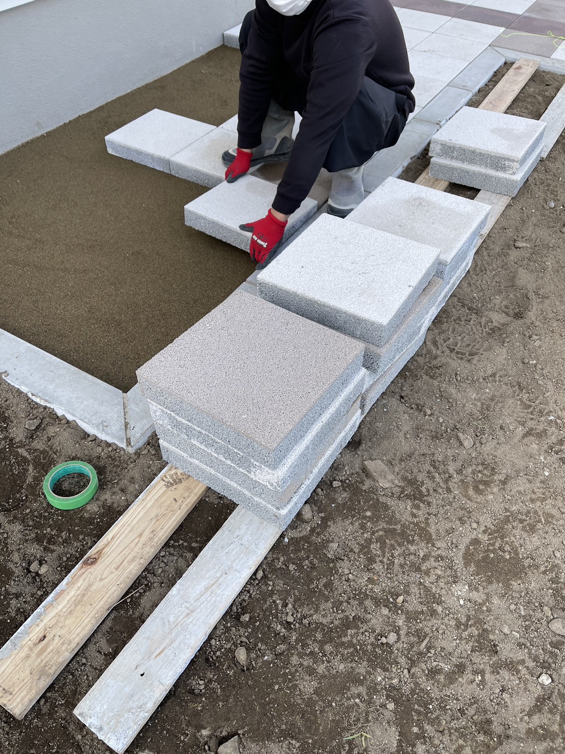 駐車場下地砕石の凍害防止対策にてシート掛け養生となります。