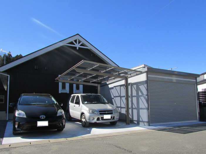 その後1台用のカーポートを設置し駐車場のコンクリートを打設して工事完了です。