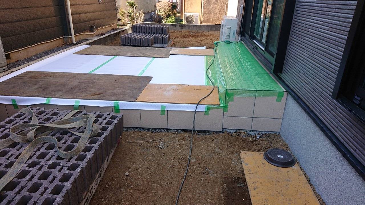 タイルデッキの養生です。