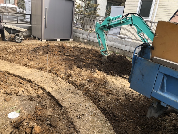 本日より工事着工開始となりました。駐車場部分よりの掘削作業となります。