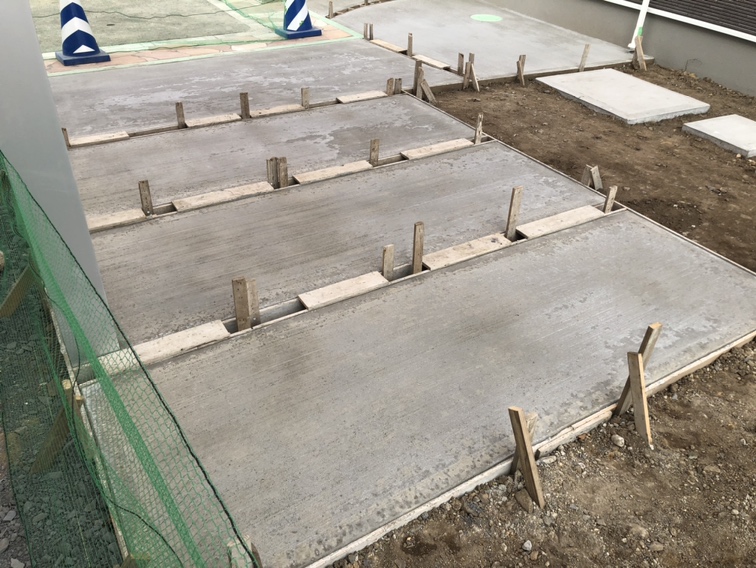 駐車場の土間コンクリートの養生中となります。
