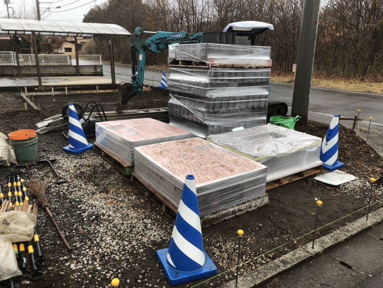 ブロック等の材料が現場へ搬入となります。