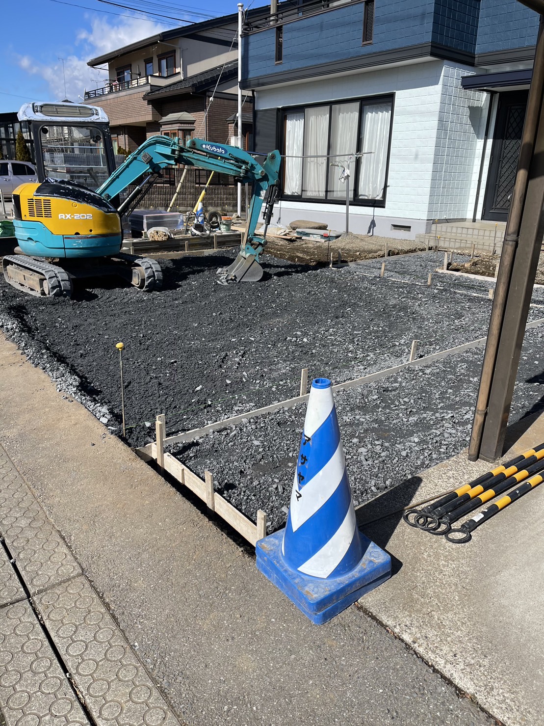 外構ING  砕石敷きです。