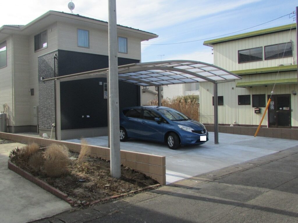 工事地域が北部方面との事で工事作業も冬季の作業となりまして作業中に雪も降り工事作業がお休みの日が数日ございましたが、本日すべての作業が終わりまして外構工事完了となりました。