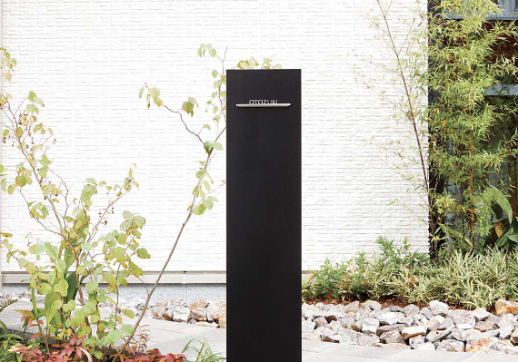 「ミース」は、宅配ボックスだけでなく、インターホン、表札、郵便ポストが一体となった機能門柱。