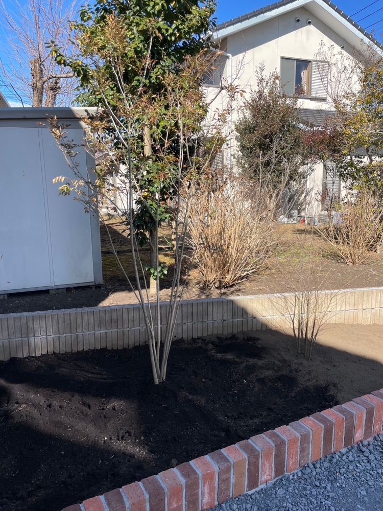 植栽作業となります。シマトネリコの株立ての植え込みです。 | ホームエクステリア『アサヤマ』