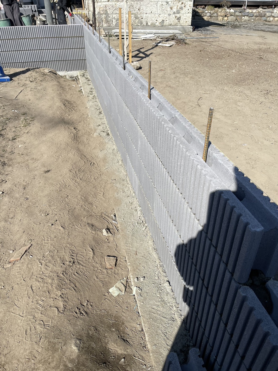 ブロック積みです。