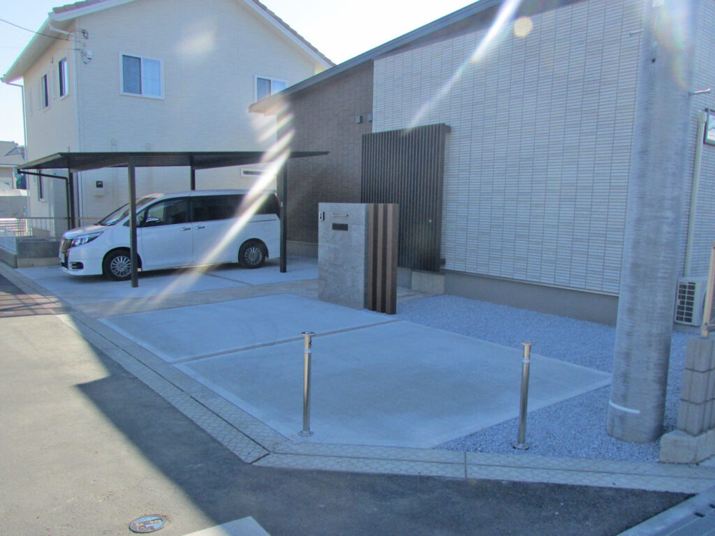 お庭の方はお客様が計画をされるとの事でしたので駐車場側の工事作業はすべて完了となります。
