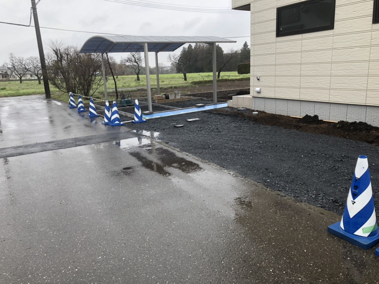 外構ING  25日は雨の為工事作業はお休みとなりました。