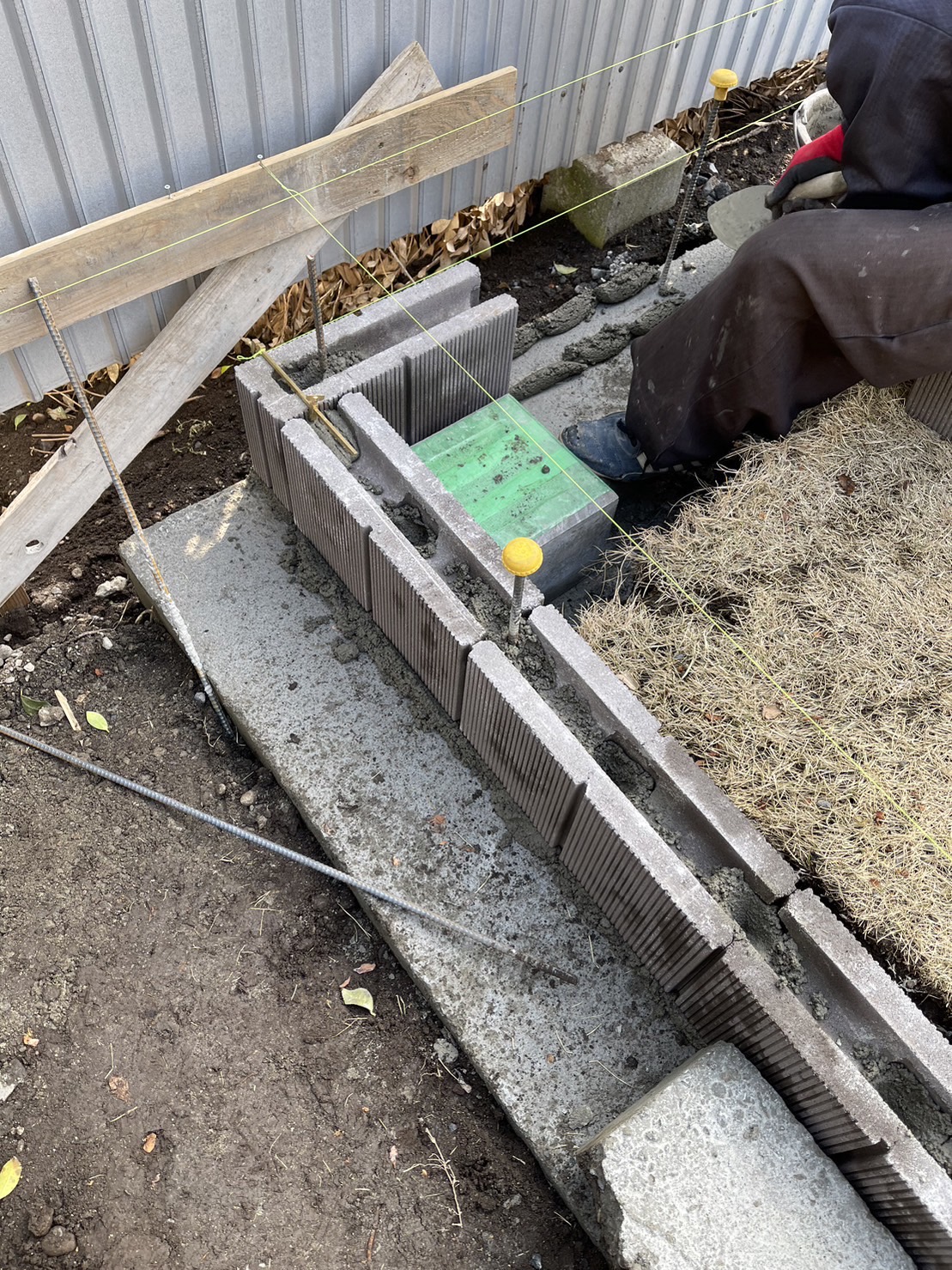 境界ブロック積み作業です。