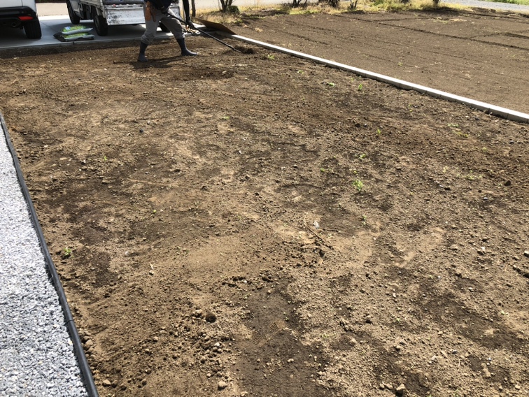 お待たせ致しました。本日はお庭の芝張り作業となります。スキトリ作業をして芝張り開始です。 | ホームエクステリア『アサヤマ』