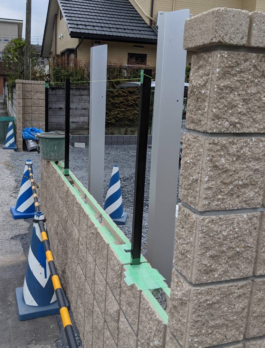 フェンスと門柱の柱建て作業です。