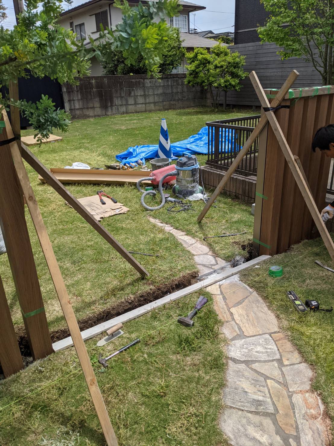 門扉の柱、デザイナーパーツ建込み作業です。 | ホームエクステリア『アサヤマ』
