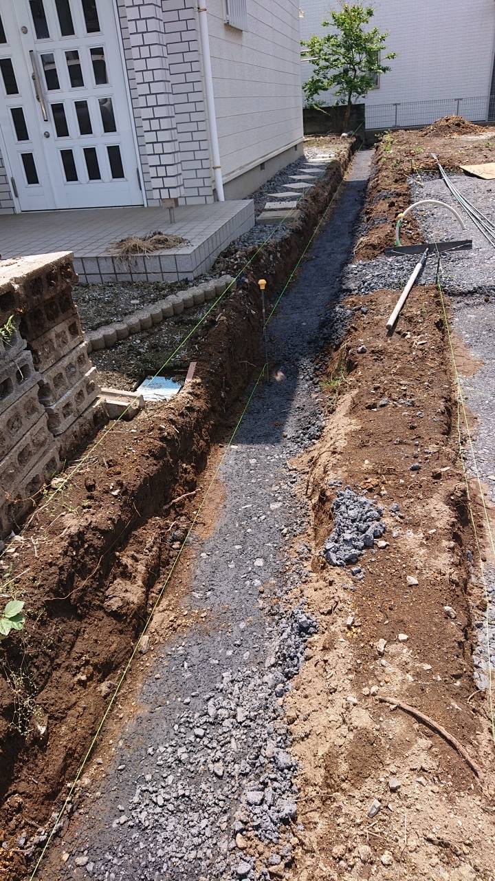 ブロックベースの砕石入れです。