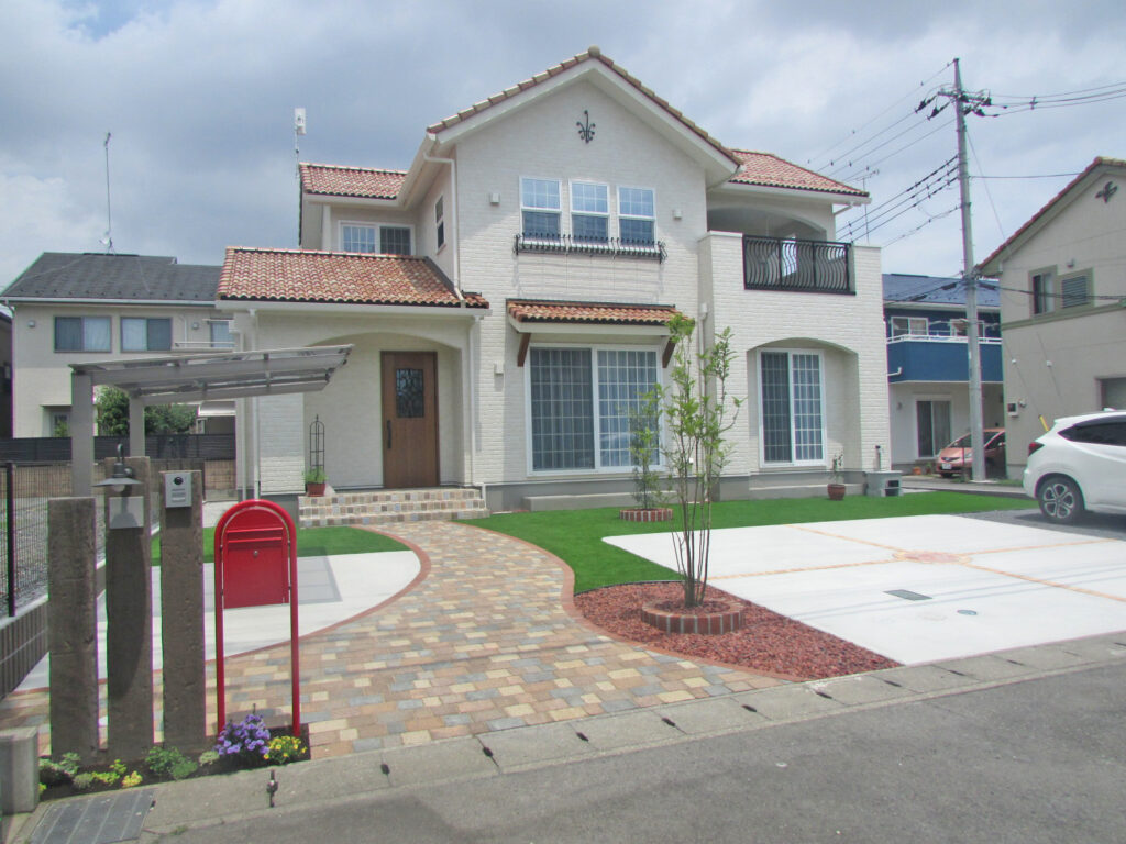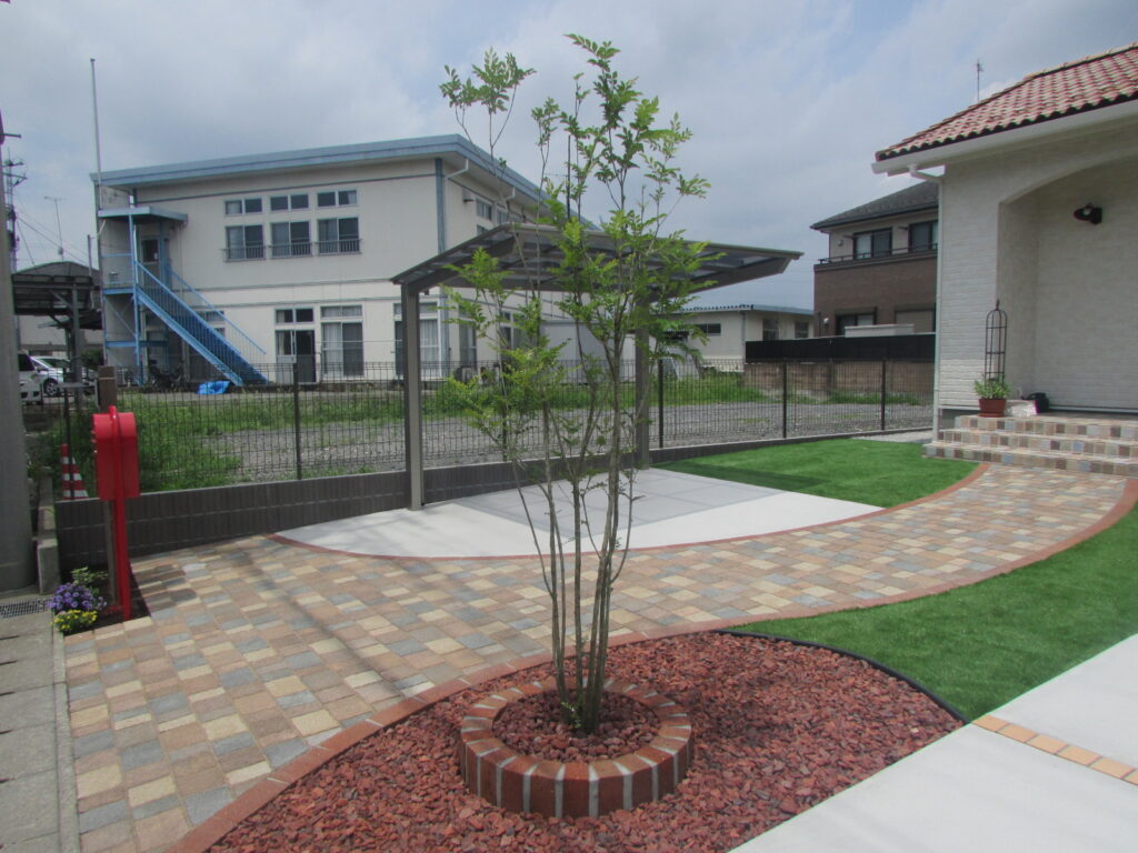 アプローチをガンデブリック施工による素敵な外構工事となりました。
