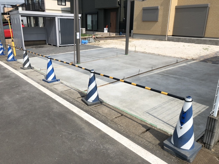 駐車場の土間コンクリートの養生となります。