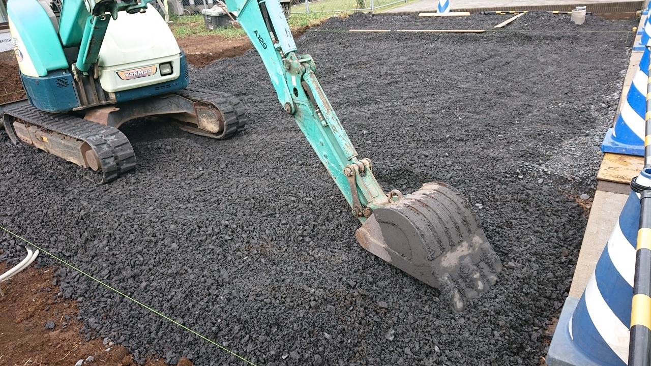 本日は駐車場の土間コンクリートの打設予定でしたが台風のの影響により雨予報となりコンクリートの打設作業は延期と致しました。