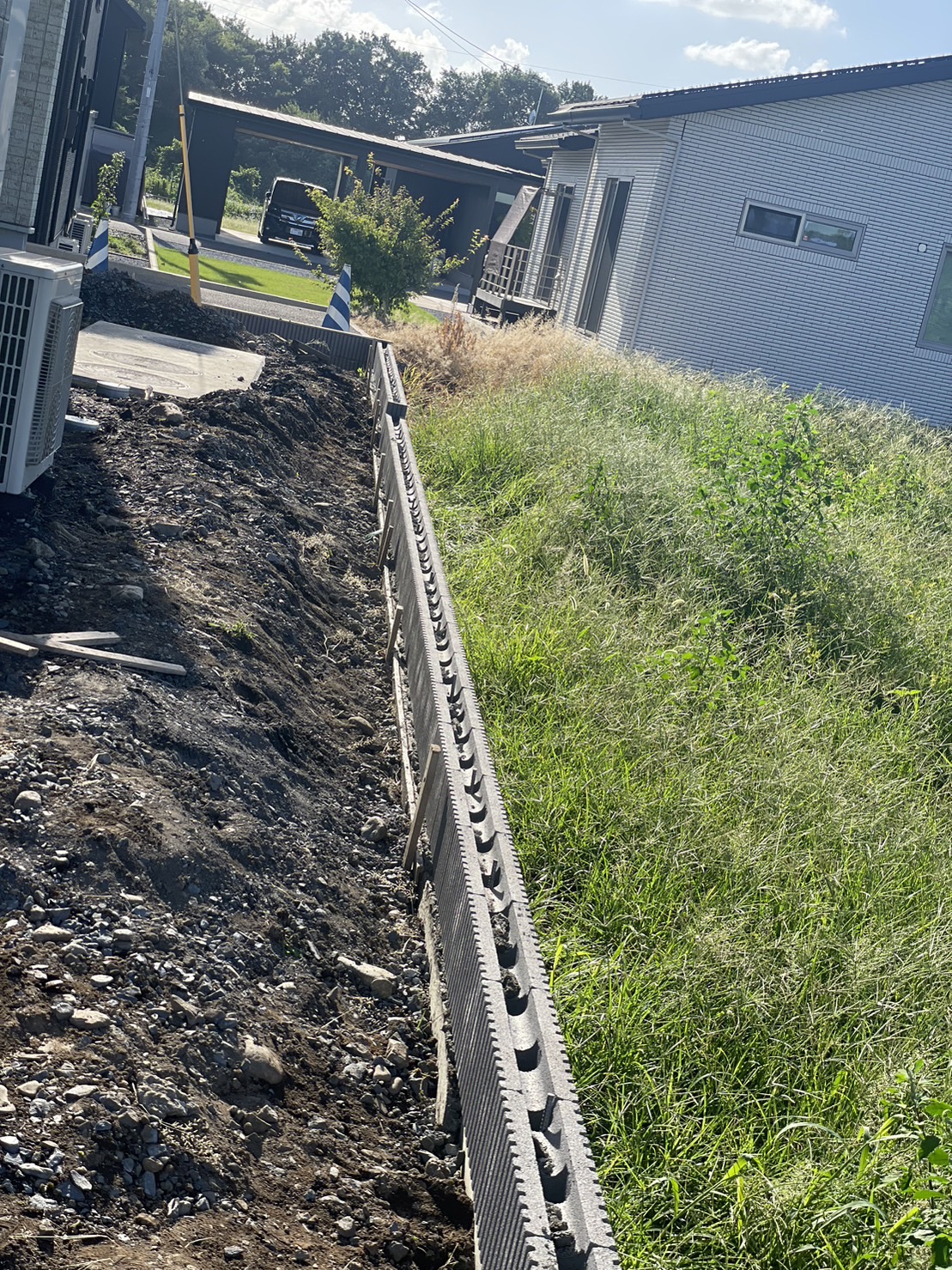 アプローチの砕石入れです。