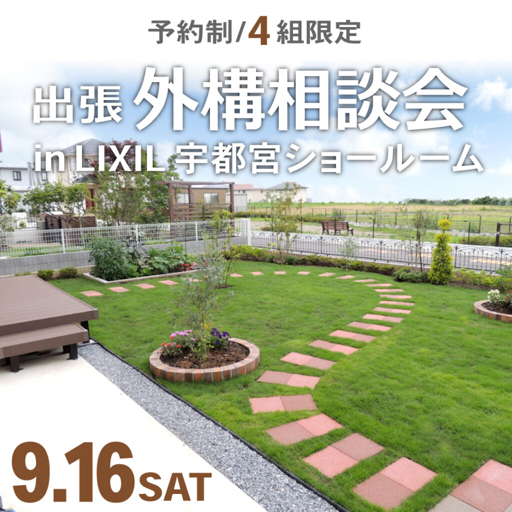 毎回ご好評を頂いております、出張外構相談会を9月16日(土)に、LIXIL宇都宮ショールームにて開催致します。