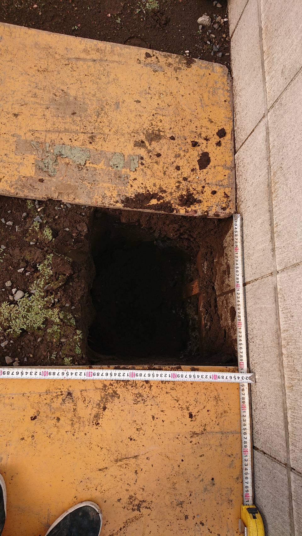 外構ING  フェンス基礎の掘削です。