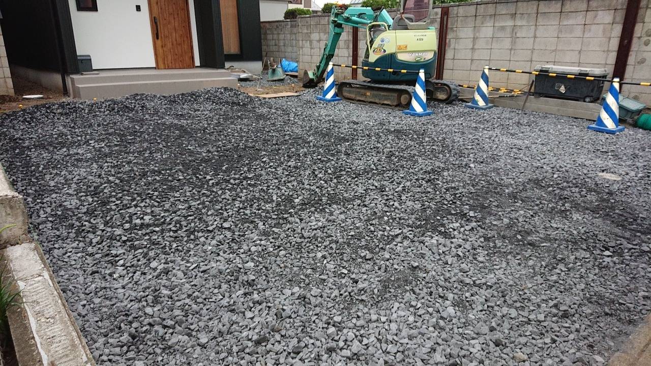 駐車場砕石入れです。