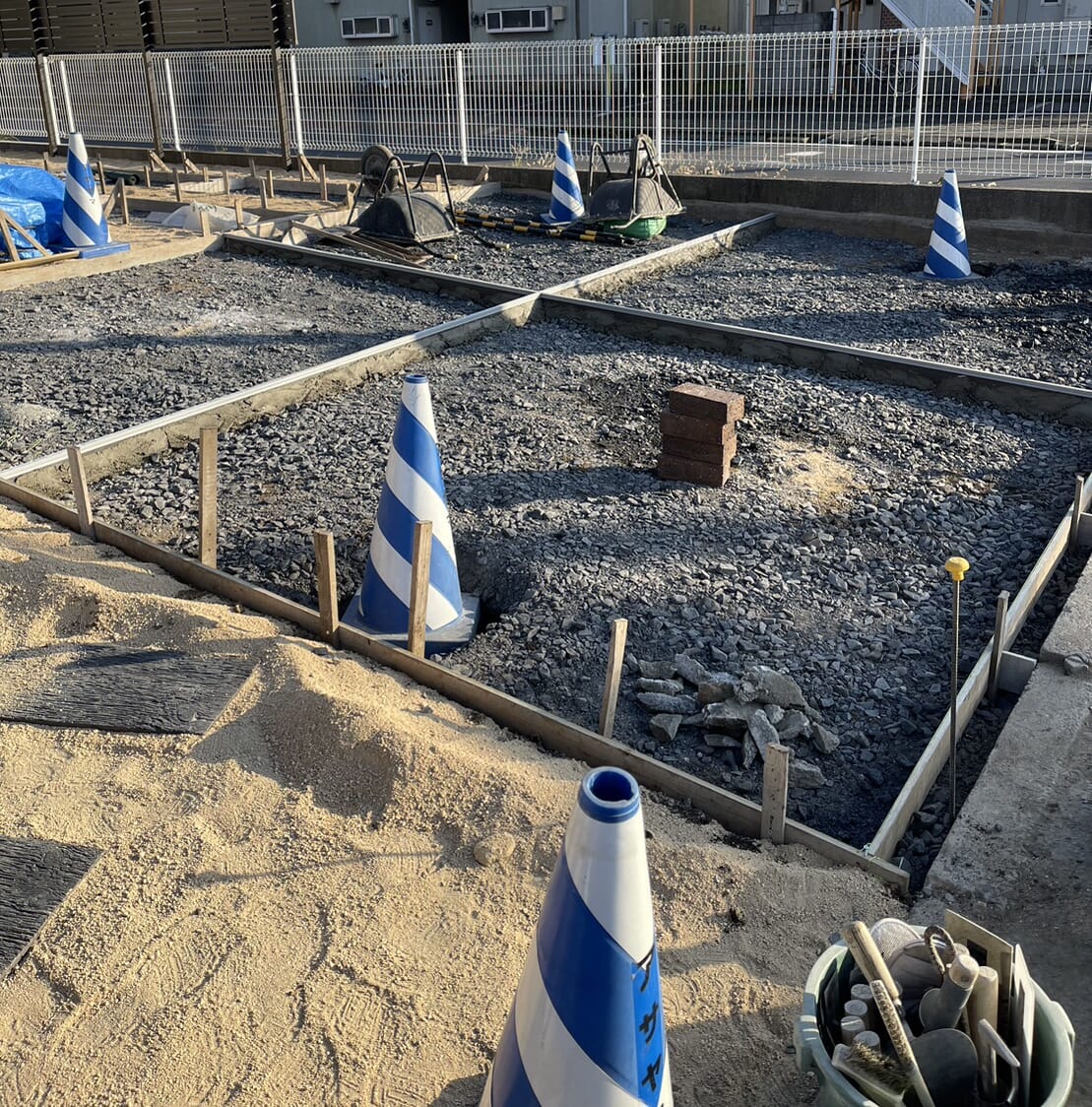 外構ING  土間コンクリート部分エキスパンタイ施工です。