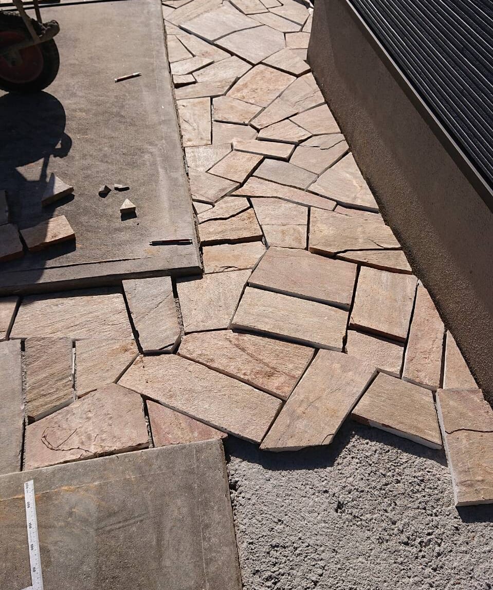 天然石乱貼りの施工中です。