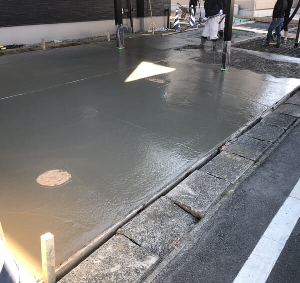 駐車場の土間コンクリートの打設となります。