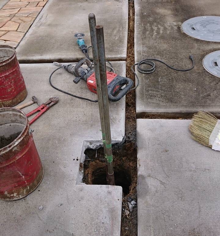 外構ING  カーポート柱部分の既存コンクリートはつりです。