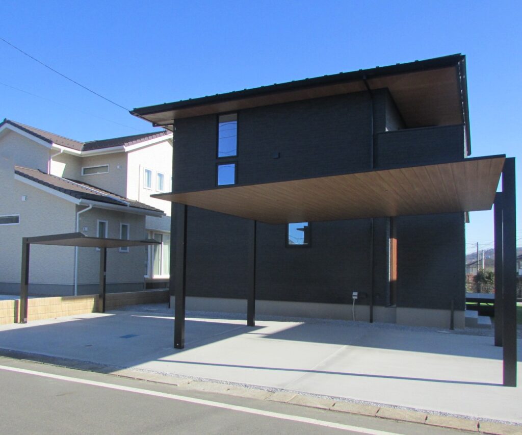 建物の色に合わせたカーポートSCが印象的な外構になりました。
