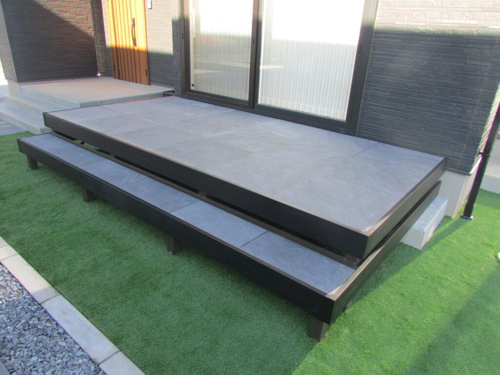 お庭のタイルデッキも階段をつけているので、出入りにとても便利になりました。