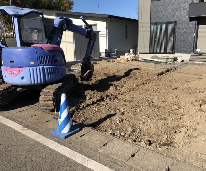 本日より工事着工となります。駐車場部分の掘削作業より開始です。