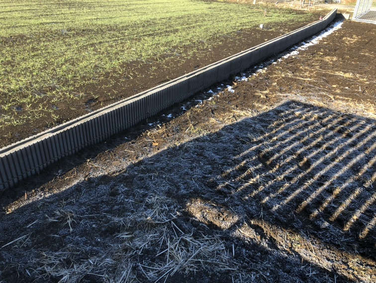 ブロック積み作業が完了し、本日はフェンスの材料を搬入して次はフェンスの設置作業となります。