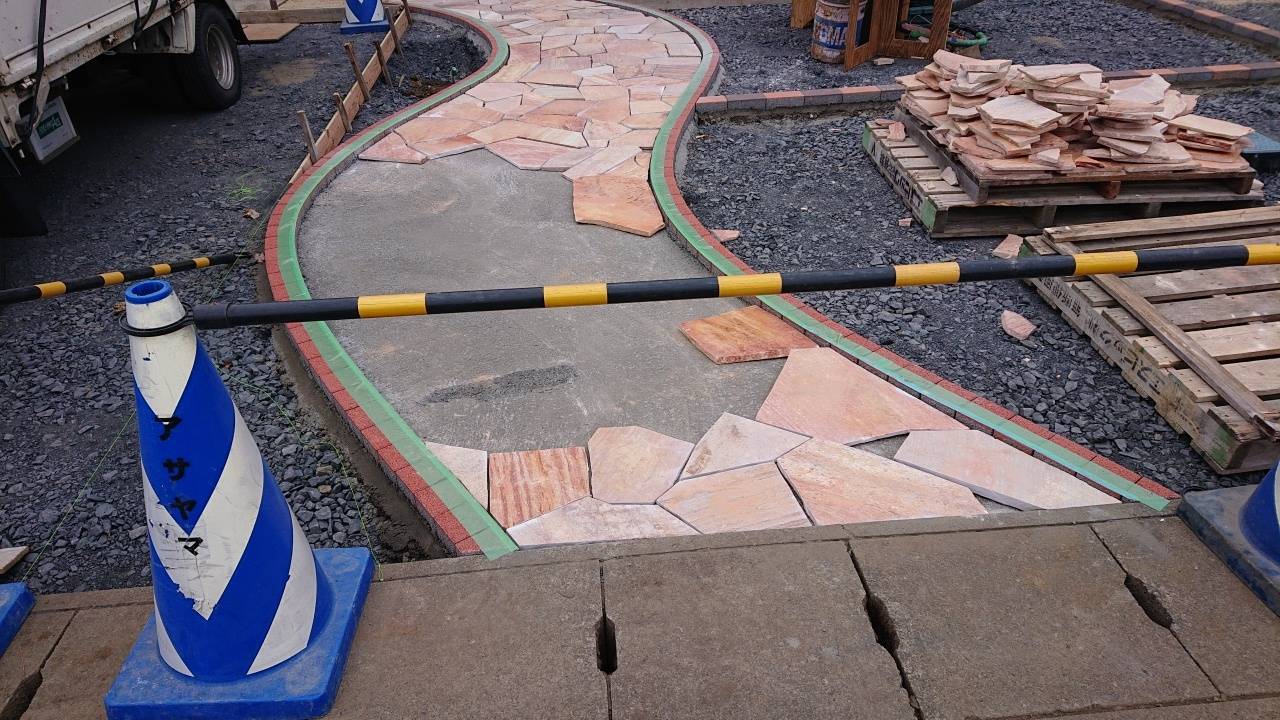 擬木平板敷き作業です。