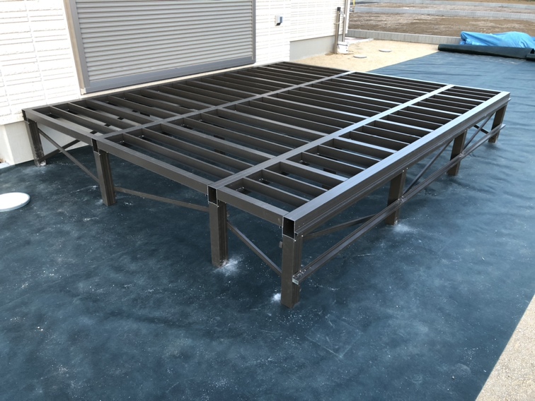 タイルデッキの設置作業となります。