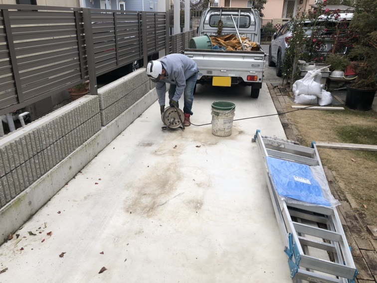 駐車場土間コンクリートの養生完了となります。ありがとうございました。