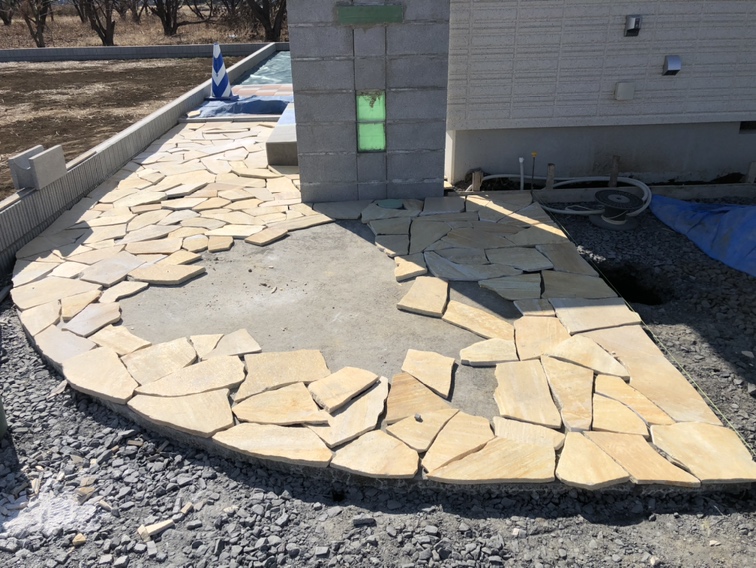アプローチの自然石乱張り作業となります。
