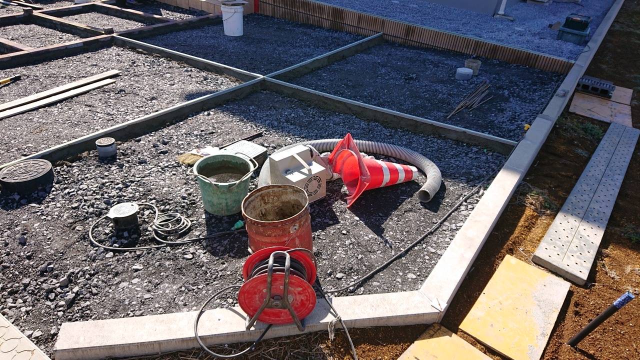 外構ING  伸縮目地の施工です。